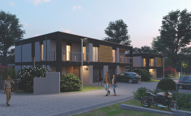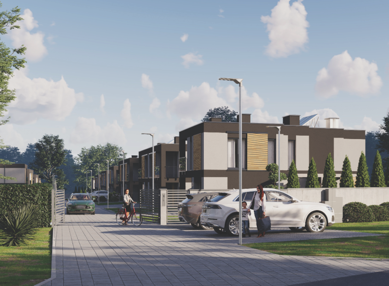Nasze osiedle będzie dopracowane w każdym detalu, co można zauważyć na naszych wizualizacjach. Całość stanowi nowoczesny kompleks domów jednorodzinnych w zabudowie bliźniaczej i wolnostojącej. Każdy z domów posiada przestronny ogródek, ale też całe osiedle będzie ogrodzone, dzięki czemu nikt niepowołany nie dostanie się do środka. Przed bramą wjazdową zaplanowaliśmy miejsca postojowe dla Waszych gości.